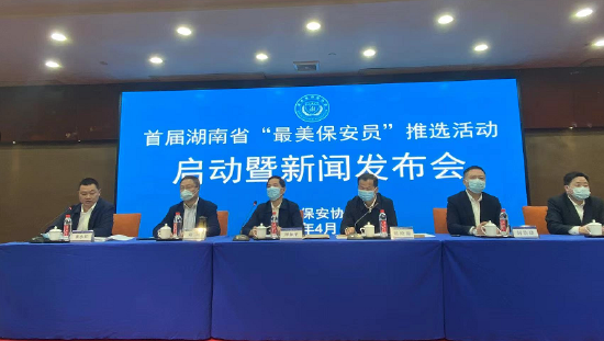 2022年4月19日上午,由湖南省保安協(xié)會主辦、湖南日報社協(xié)辦的首屆湖南省“最美保安員”推選活動啟動儀式暨新聞發(fā)布會在長沙召開,省保安協(xié)會會長譚和平、省保安協(xié)會顧問兼專家委員會主任委員趙劍、湖南省物業(yè)管理行業(yè)協(xié)會書記封浩建、省公安廳治安總隊內(nèi)保支隊長兼省保安協(xié)會秘書長張小兵、省保安協(xié)會專職副秘書長常自力、十余家新聞媒體出席發(fā)布會。發(fā)布會由省公安廳治安總隊副總隊長、二級警務專員兼省保安協(xié)會監(jiān)事長劉繪錦主持。