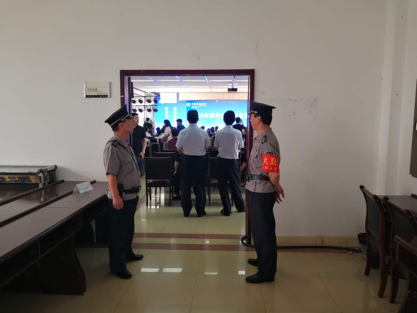 2020年6月6日上午,中國農(nóng)業(yè)銀行懷化分行在分行7樓會議室舉辦2020年案件防控情景演練大賽,我公司派駐分行機(jī)關(guān)保安隊(duì)員全員上崗值勤,確保大賽安全、順利、圓滿舉行。