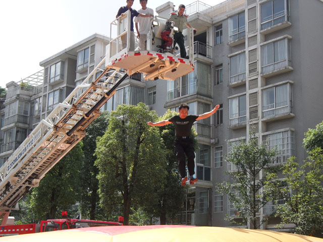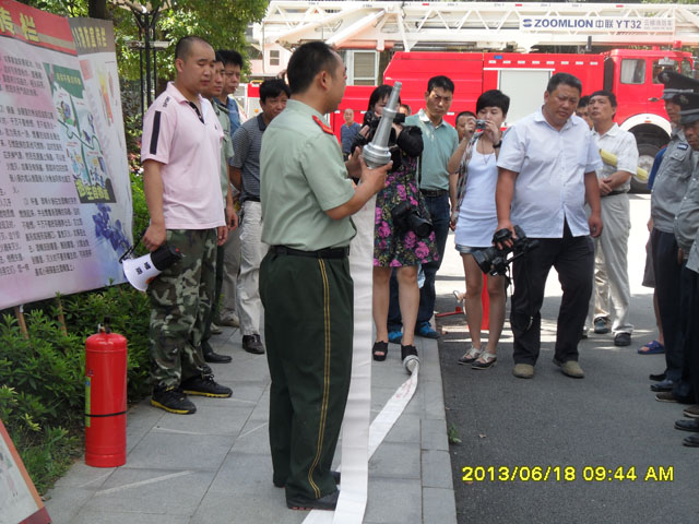 首先進(jìn)行的是由市消防支隊(duì)老班長主講的消防安全常識(shí),通過實(shí)例及消防戰(zhàn)士們救火的親身經(jīng)歷,告訴我們?cè)鯓幼钣行У姆阑鸺霸诩彝ブ鸬那闆r下怎樣最大程度的減少損失和保全生命,詳細(xì)介紹并現(xiàn)場(chǎng)演練了各種消防器材的使用及注意事項(xiàng)。進(jìn)行的第二個(gè)內(nèi)容是在緊急情況下怎樣最有效的逃生方法,通過救生氣墊或能夠代替救生氣墊的棉被等物件最大程度的提高著火點(diǎn)人員跳樓的損傷,金劍保安公司保安人員及物業(yè)公司員工都積極主動(dòng)的參予其中。第三個(gè)內(nèi)容也是最驚險(xiǎn)的內(nèi)容,由消防戰(zhàn)士表演了失火情況下利用床單或窗簾等物件織成繩,從窗口滑下的逃生方法。