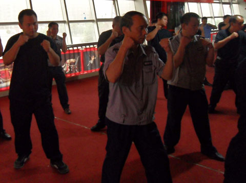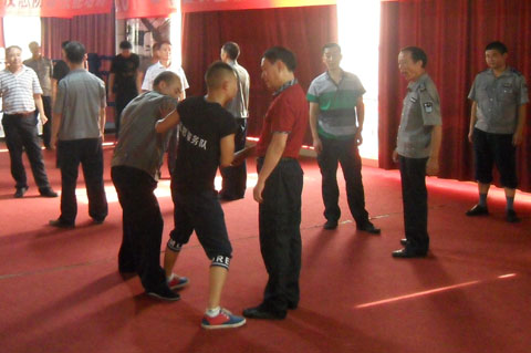 為保證此次培訓的順利進行,農(nóng)業(yè)銀行懷化分行各級領導高度重視、懷化金劍保安公司積極配合,做出了詳盡的培訓計劃及保安人員代班計劃,做到培訓、安全兩不誤。整個培訓分三個批次進行,每個批次進行五天的培訓。各縣、市、區(qū)支行安保人員及大堂保安人員分三批輪流培訓,鶴城區(qū)大堂保安白天繼續(xù)上班,利用每天晚上的兩個小時時間進行培訓。培訓內(nèi)容包括銀行系統(tǒng)的安全任務與責任、反恐防暴所需的各種專業(yè)技能,如擒拿格斗、軍體動作、禮節(jié)禮貌、專業(yè)器材的使用等等。培訓將于2014年9月25日結(jié)束。