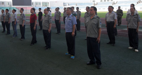 2014年9月10日晚上19:30分,中國農(nóng)業(yè)銀行懷化分行各支行、營業(yè)部、網(wǎng)點安全保衛(wèi)人員、大堂保安人員反恐防暴技能培訓在懷化市體育中心隆重舉行了開幕儀式,標志著2014年農(nóng)業(yè)銀行為期半月的反恐防暴培訓、演練正式拉開序幕。參加開幕儀式的有懷化市公安局治安支隊張支隊長、內(nèi)保大隊謝洪民大隊長、農(nóng)業(yè)銀行懷化分行副行長、農(nóng)業(yè)銀行懷化分行紀檢書記、懷化金劍保安公司主管銀行保安經(jīng)理陳紅偉、副經(jīng)理李振雄、以及市分行、各支行、營業(yè)部、網(wǎng)點安全保衛(wèi)人員及保安人員。