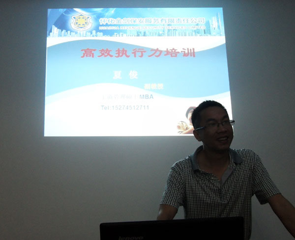2015年5月29日上午,懷化金劍保安公司高薪聘請了工商管理碩士、懷化學院副教授夏俊老師在公司會議室為全體管理人員和部分班隊長主講了“高效執(zhí)行力”的培訓講座。