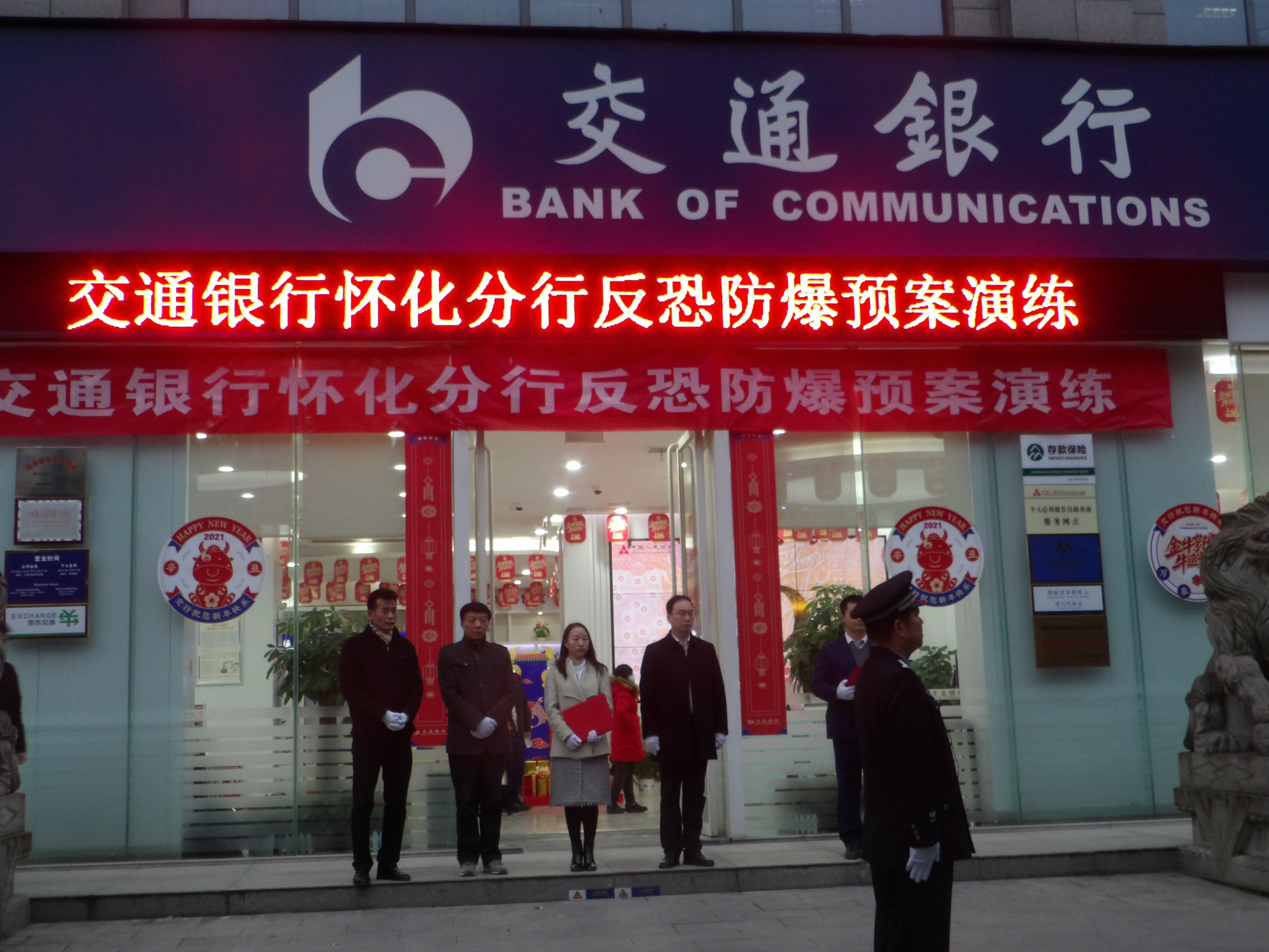 2021年1月7日下午6:00,交通銀行懷化分行在分行營業(yè)部舉辦2020年反恐防爆應(yīng)急預(yù)案演練。